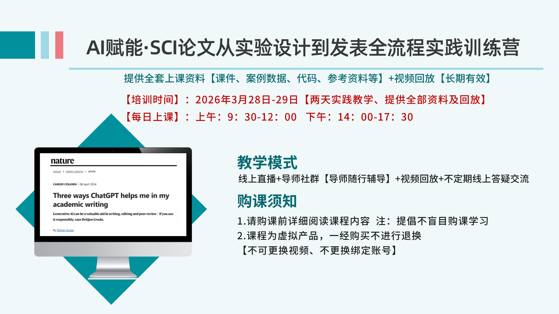 直播课:一图胜千言-顶刊级科研绘图工坊暨AI支持下Nature级数据可视化高级培训班 2026-03-13 09:30:00 北京市
